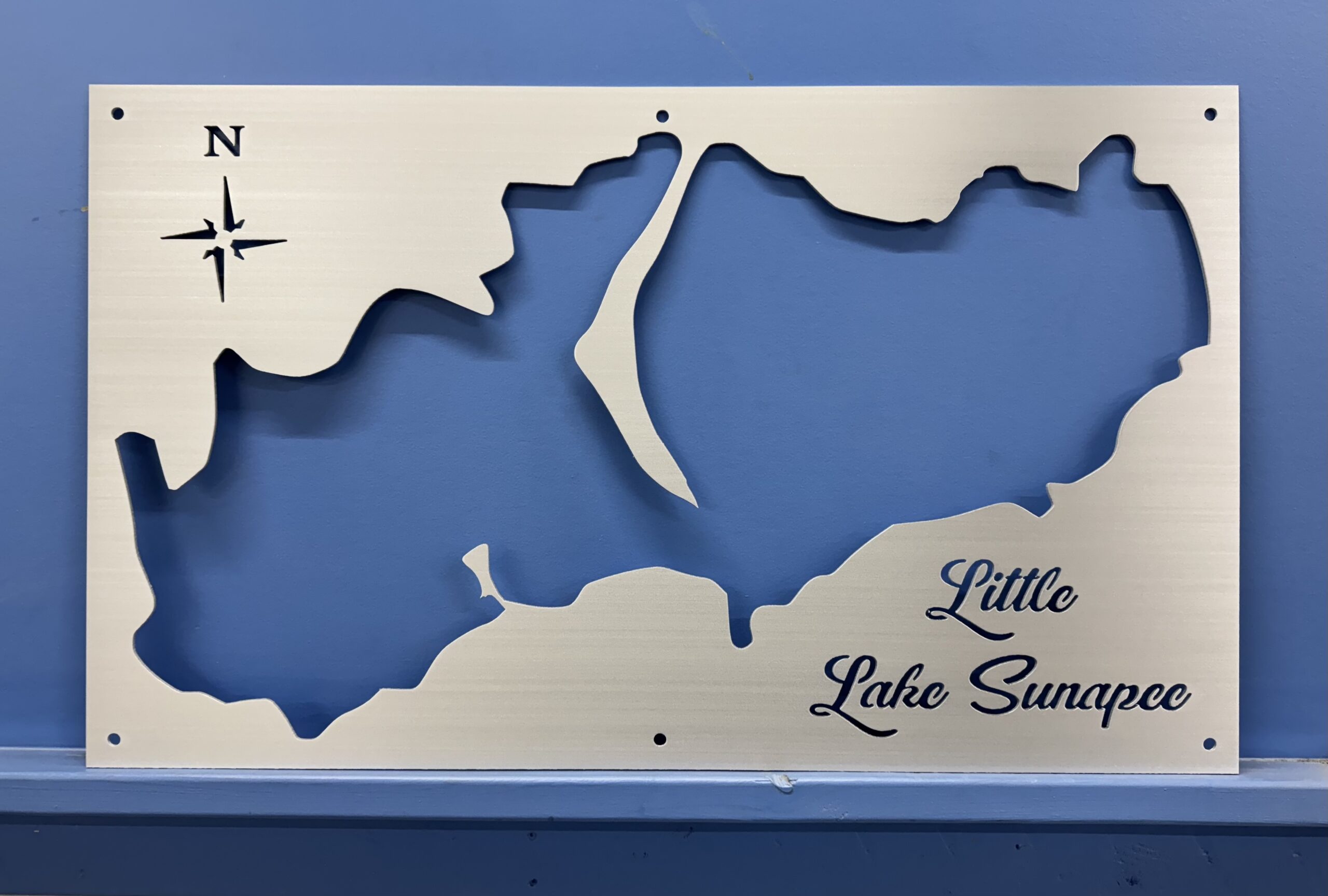With Metal Lake Maps, not only do you get a stunning Lake map, but we offer one of kind customization so you can have your Lake Map personalized to your liking. We can add family names, lake house names, latitude/longitude and even pin your house location, making more lake art than lake decor. Unlike wooden maps, our maps are made from metal and will not deteriorate over time even mounted outside. Unlike the wooden maps, we can make our custom lake maps much larger than a hobbyist can with their wooden lake maps.