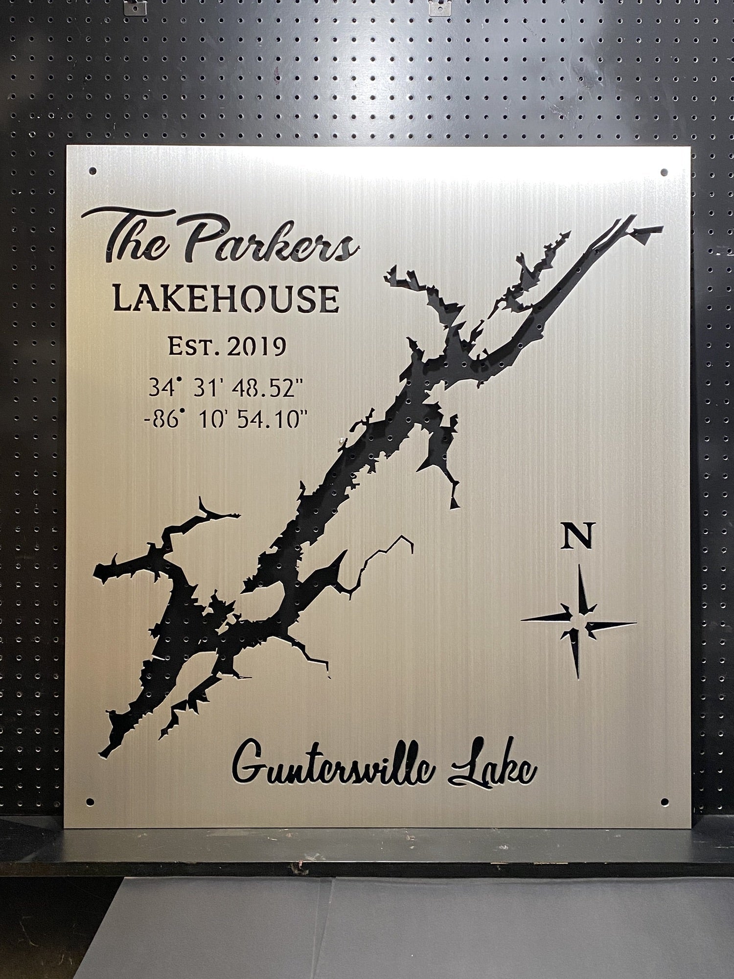 Bring the beauty of Lake Guntersville right into your living space with our custom-crafted lake maps. Each Lake Guntersville map is precision-made from 1/8″ brushed aluminum, finished with a protective clear coat, and measures an impressive 23″x24″. Whether you display it indoors or outdoors, your map will resist weather and maintain its captivating appearance.