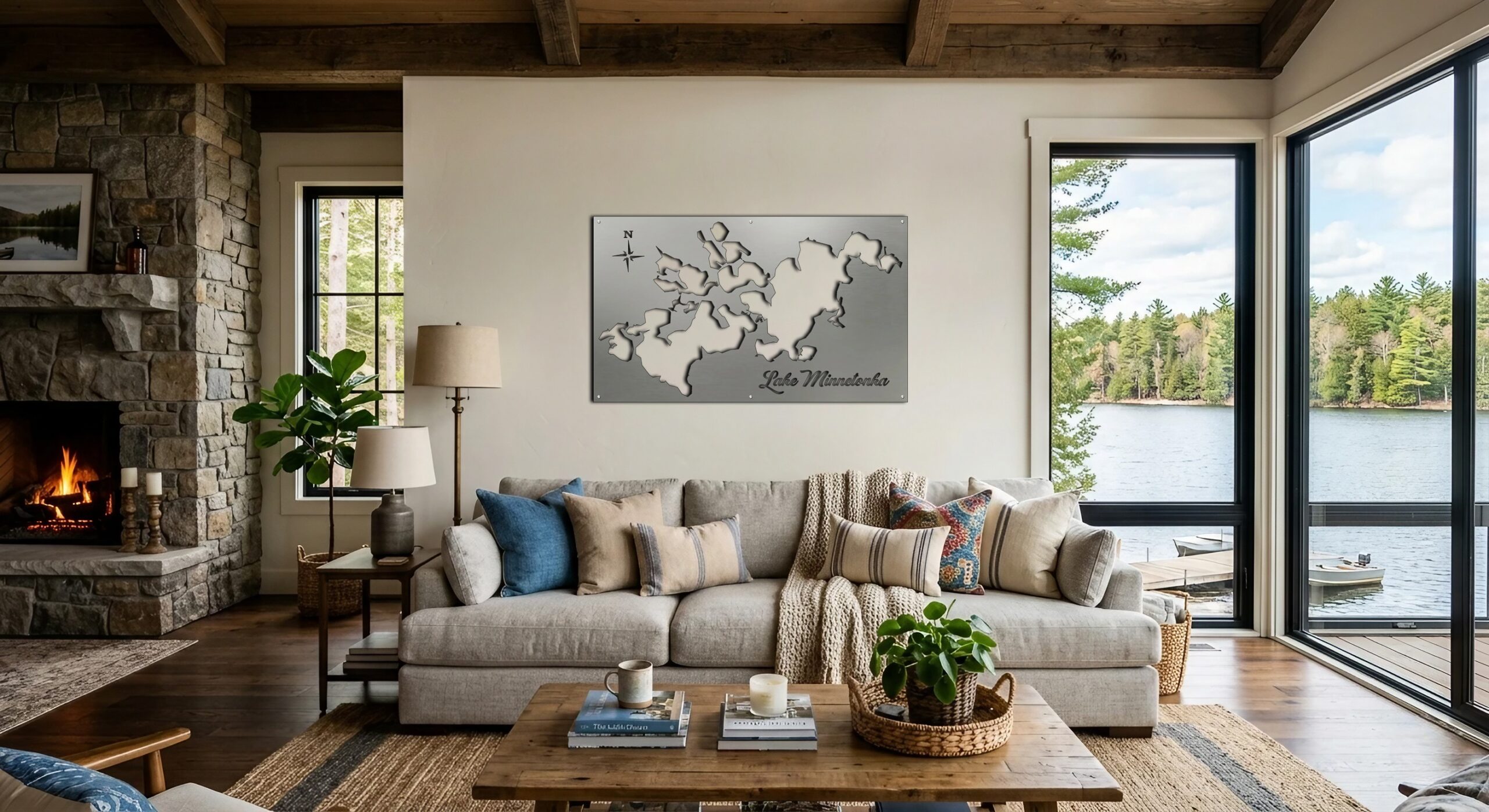 Bring Lake Minnetonka into your space with a custom metal lake map designed for homes, lake houses, offices, and gift giving. This piece is made for customers looking for a Minnesota lake map with a clean, dimensional look and durable construction.