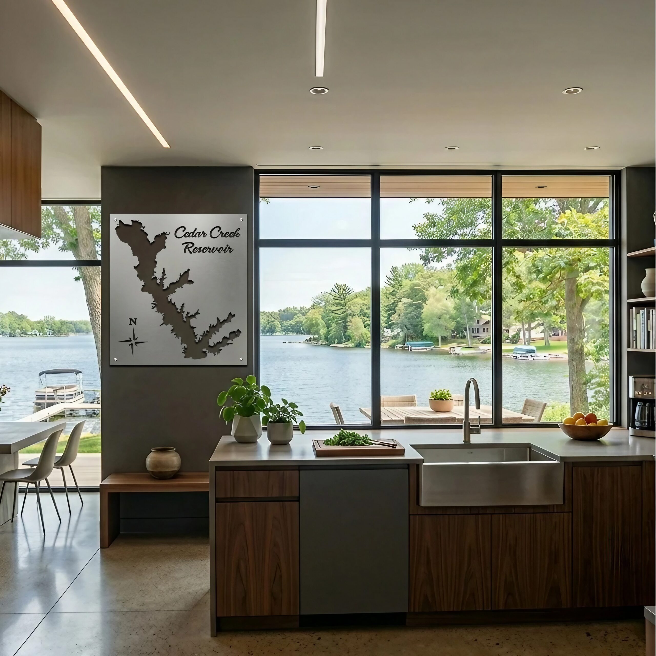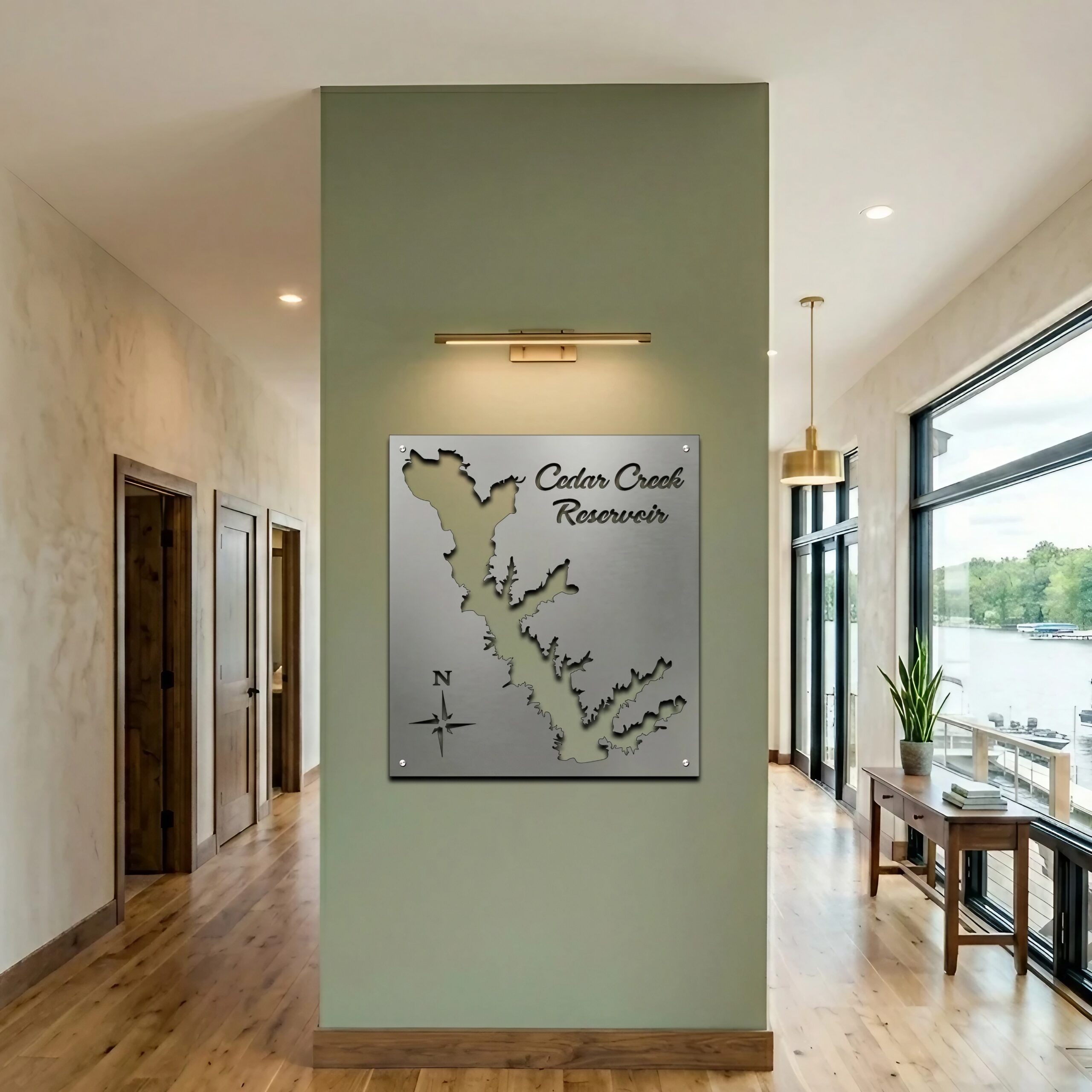 Bring Cedar Creek Reservoir into your space with a custom metal lake map designed for homes, lake houses, offices, and gift giving. This piece is made for customers looking for a Texas lake map with a clean, dimensional look and durable construction.