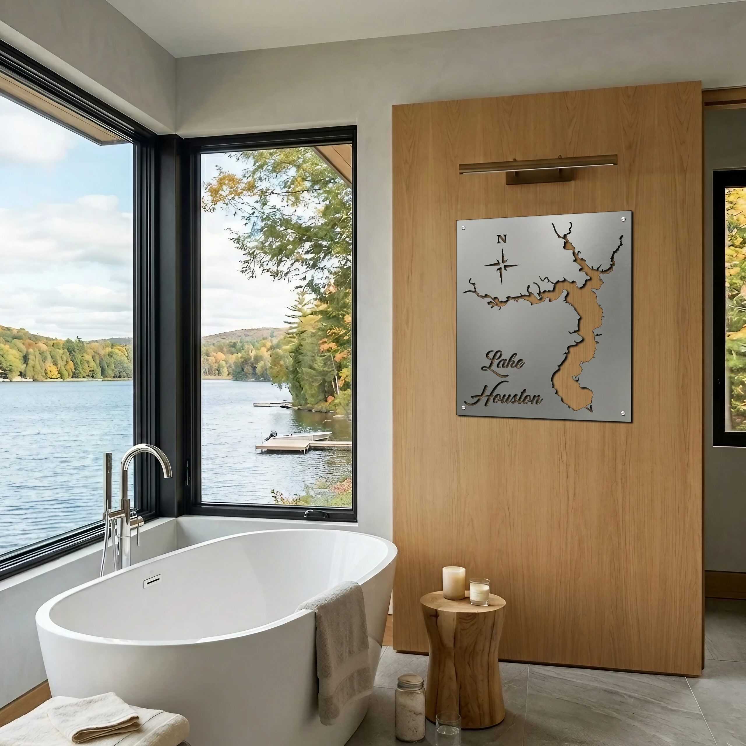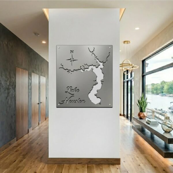 Bring Lake Houston into your space with a custom metal lake map that gives this Texas lake a clean, modern presence on the wall. It works well in lake houses, living spaces, offices, and as a gift for anyone with a connection to Lake Houston.